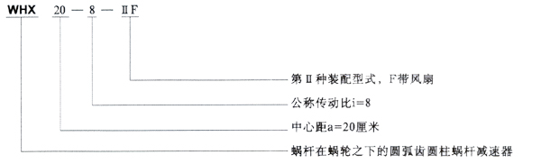 減速器型號(hào)中的“w、H、T、X、s、c”分別為“蝸、弧,通、下、上、側(cè)”的漢語(yǔ)拼音字頭,組合為